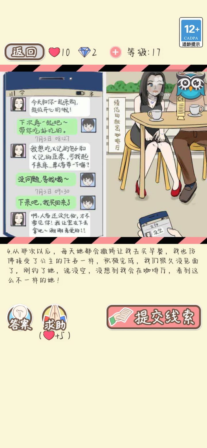 很喜欢这个游戏,有很多细节做的很好,我觉得是同类渣男渣女游戏中最好的。一次更新后看到游戏中说有抄袭的,游戏官方还打了水印。然后,我昨天玩了之前预约的一个游戏,第一关开始就有点眼熟,找了半天。之前,情侣的秘密已经通关了,一直等更新。由于手机内存有限,就卸载了,等着以后再玩。然后刚才想起来了。下面放几张图吧,,,(又重新玩的,所以后面的还没截出来)上面一张情侣的秘密,下面一张我不是备胎。这个