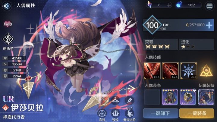 技能简介:1技能满级3能量5倍攻击力伤害,2技能满级3能量5倍攻击力伤害(可多消耗混沌能量提高伤害,满混沌能量一刀17倍攻击力伤害,全游戏第一),被动释放1技能提高暴击率。专武属性为出暴击破防,因此暴击率对于伊莎贝拉最为重要。