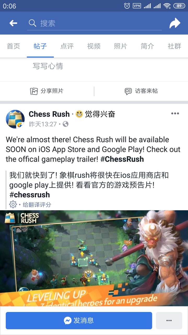 转发来自:Youtobe —Chess Rush 海外官方账号视频。个人觉得还不错,期待正式上线、