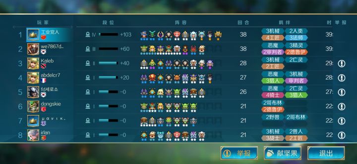只剩两个人了,第二只剩一血了输给我好几次了为啥还能继续?打败了他好几次才结束了,还有这个游戏三星这么好合的嘛,我看这个人早就有几个三星了,竟然能合出来5个,是科技?