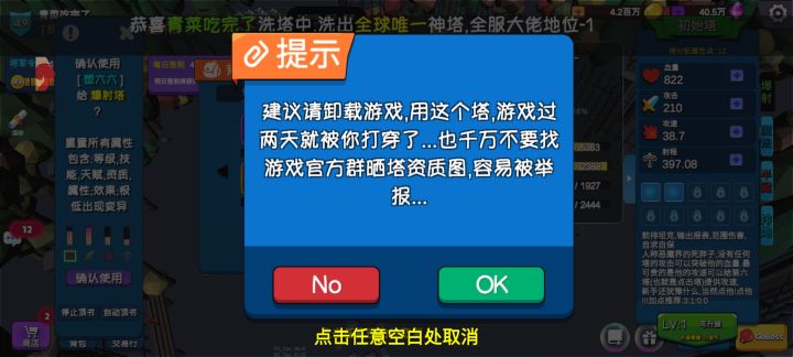 昨天晚上入坑,目前150层。1.这个游戏怎么变强呢?洗塔,就是通过塑66/铁66/金66刷新塔的属性,获得更强的组合。为什么说是组合,因为不仅仅看资质,还得看格子。资质与格子的关系大概就相当于CPU和多少核的关系,要二者都高才行 。那么要洗成什么样子才洗成什么样子呢,差不多就行了。因为格子数量,即技能(核心)的数量与层数挂钩,那么你就没有办法在前期刷出终极产物而且每次重新洗塔伤筋动骨,所以