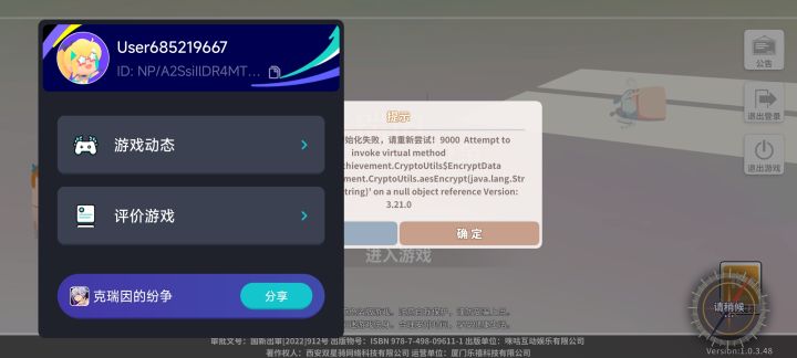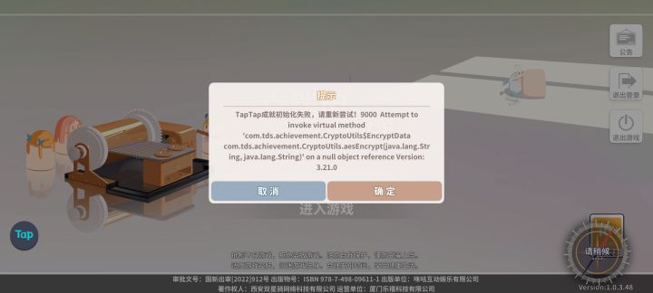 下载游戏后头两天能正常玩,之后的一周里闪退次数逐渐增加,再后来登录的时候就一直弹报错说taptap成就初始化失败,游戏内tap浮窗id信息显示也不正常。尝试过重新安装游戏和taptap平台都无法解决。手机型号:小米14pro系统:HyperOS 1.0.27.0.UNBCNXM