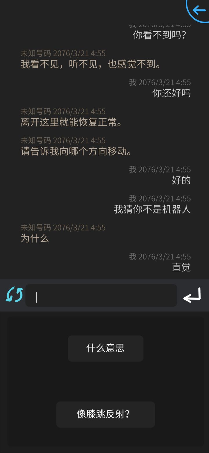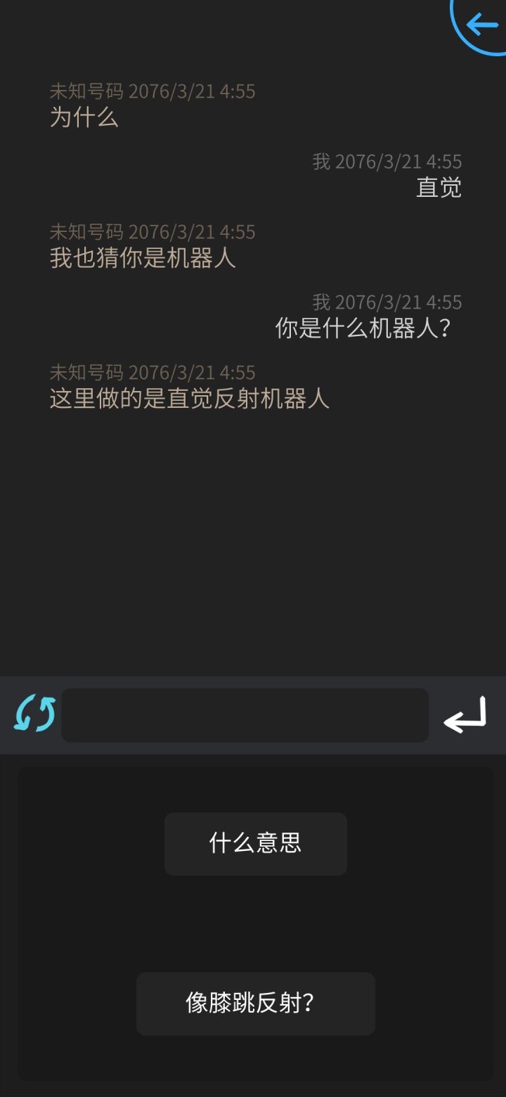 有一个对话bug“我猜你不是机器人”对方的回复是“我也猜你是机器人”也是哪来的...我明明猜的不是机器人啊orz