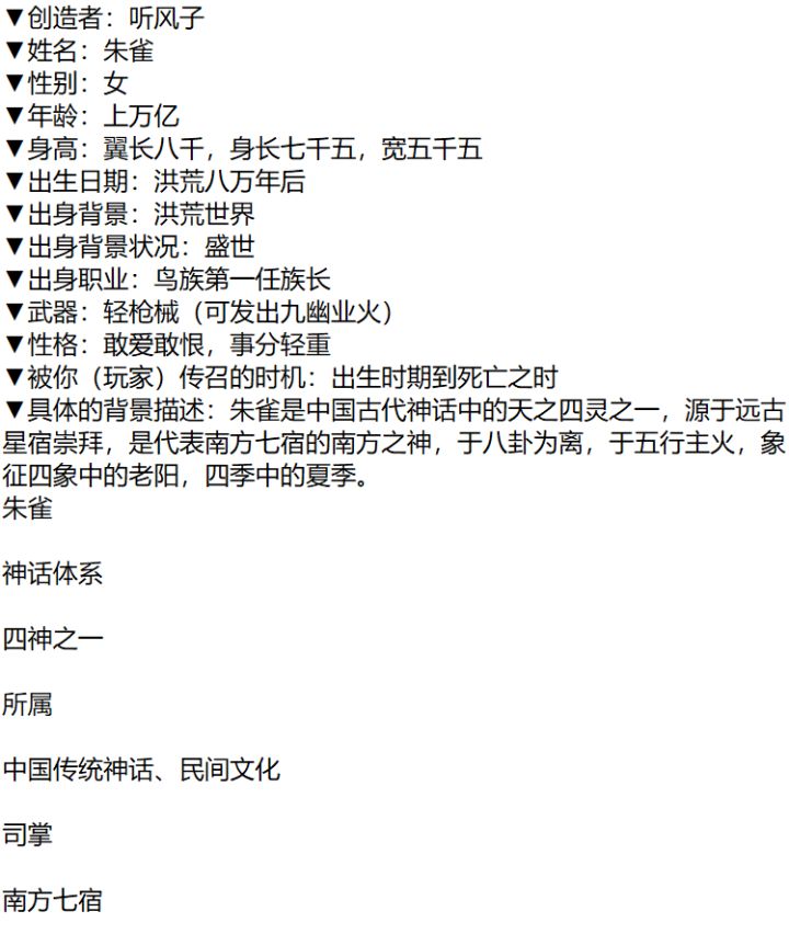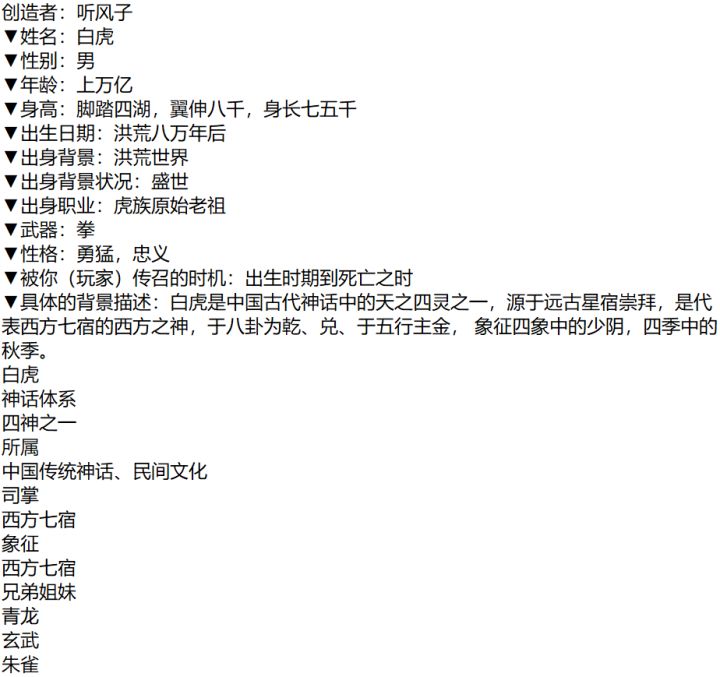 ————————————图片镇楼,无实际意义——————————姓名:马天宇性别:男年龄:已经记不清了身高:145cm出生日期:创世纪初出生背景:玄幻仙侠出生背景状况:盛世出身职业:“猎物”武器:剑性格:冷酷的死傲娇,还是个妹控传送时机:使用冰葬完全的“献祭”自己时介绍:混沌之初,世界树便扎根于虚空之中,汲取法则为养料,节出了不得了的“果实”。机缘巧合下,三枚“果实”有了懵