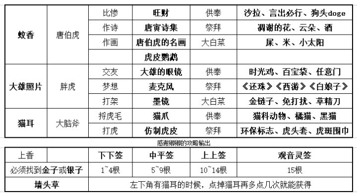 PS1:反正没几个人,这个帖子的已经送出去了......PS2:这里很多用了论坛大佬和百度的攻略,考虑到大佬没有更新过,我就重新发个攻略了,本来可以不带图的......一、小岳岳的演出1、岳云鹏按身后扇子顺序表演,就会获得观众的打赏得道具:红色秋裤、红色鲜花、搓澡巾、香蕉、拳击手套、俄罗斯套娃、手机、笑脸抱枕、五环牌、中化香烟2、击鼓,根据灯笼提示击鼓得道具:德雨社家谱、喜剧人奖杯、祖