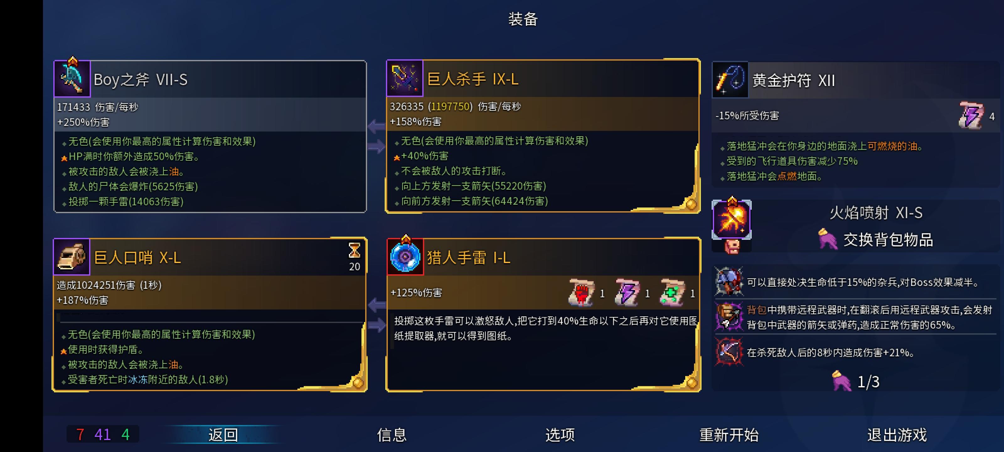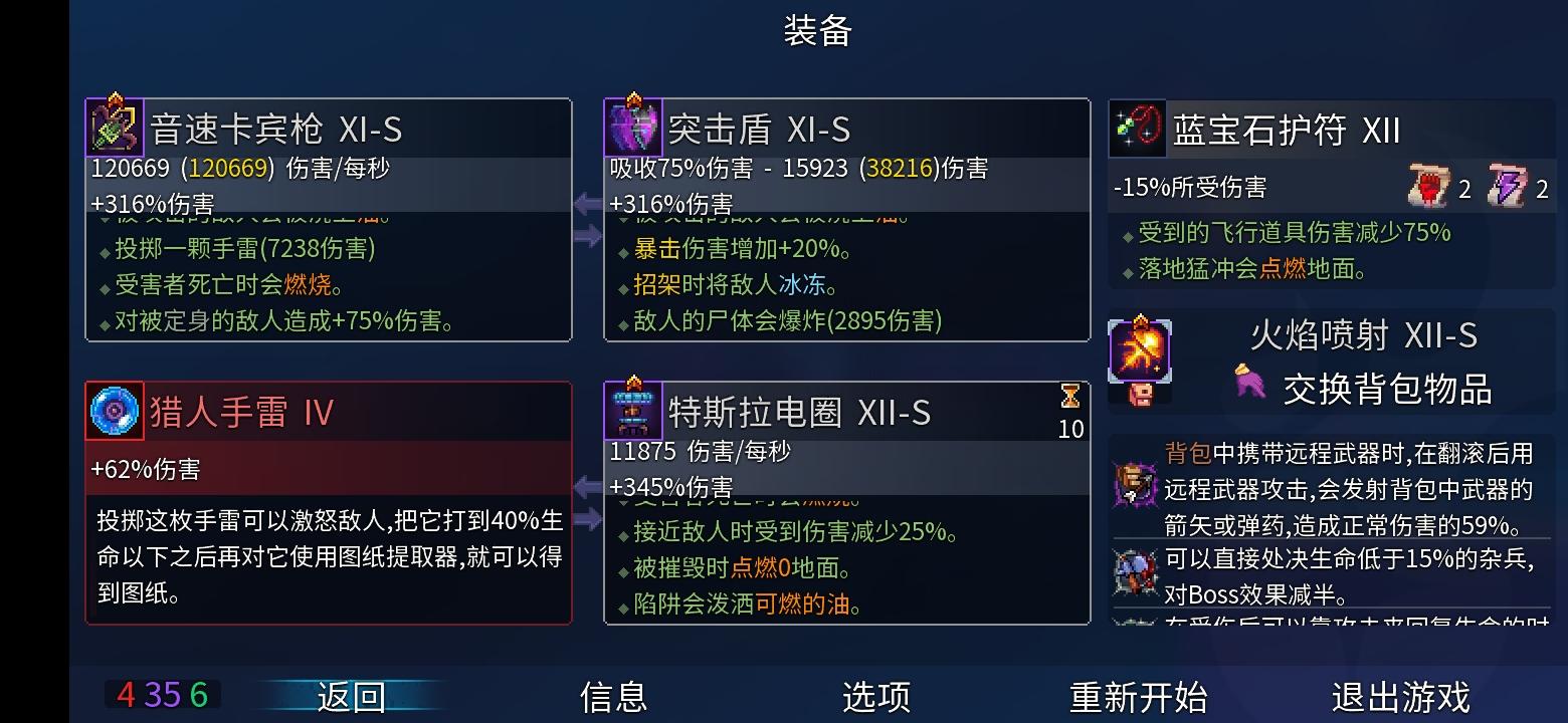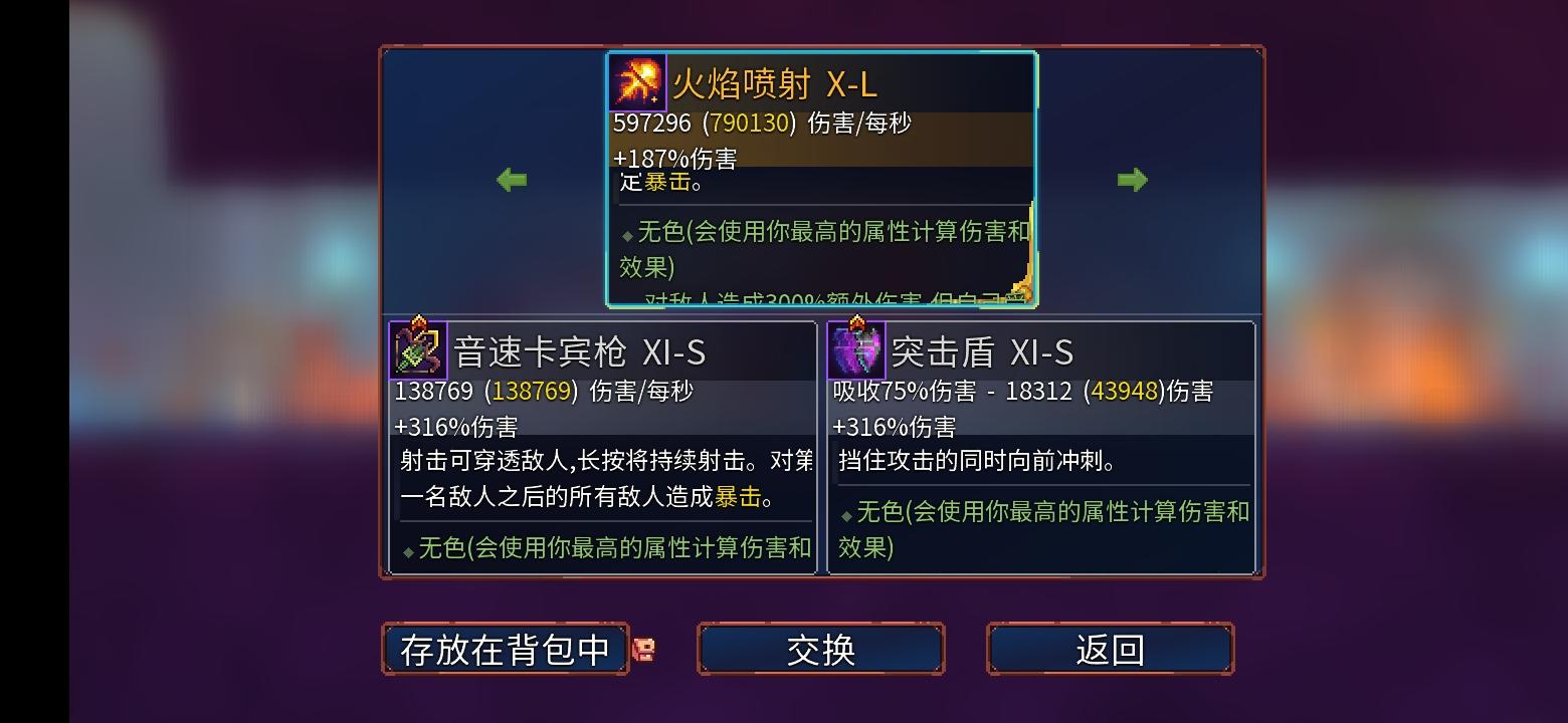 “俺寻思,这玩意不比魔法飞弹香?”“香的太多了!”飞刀游戏开局就已解锁,是把红色配紫色的远程武器(上图是无色的)八格弹药,命中附带数秒的流血效果命中后子弹会停留在敌人身上,若敌人未死则在10秒后自动返回直接命中伤害相对不高,所以伤害主要靠流血效果来拖出。实战测试表现优秀,随便乱跳,乱丢,莫名其妙就能打完整出输出。所以在玩主飞镖时,最好配一些便于游走的变异来,丢几刀就跑,能高效消耗敌人