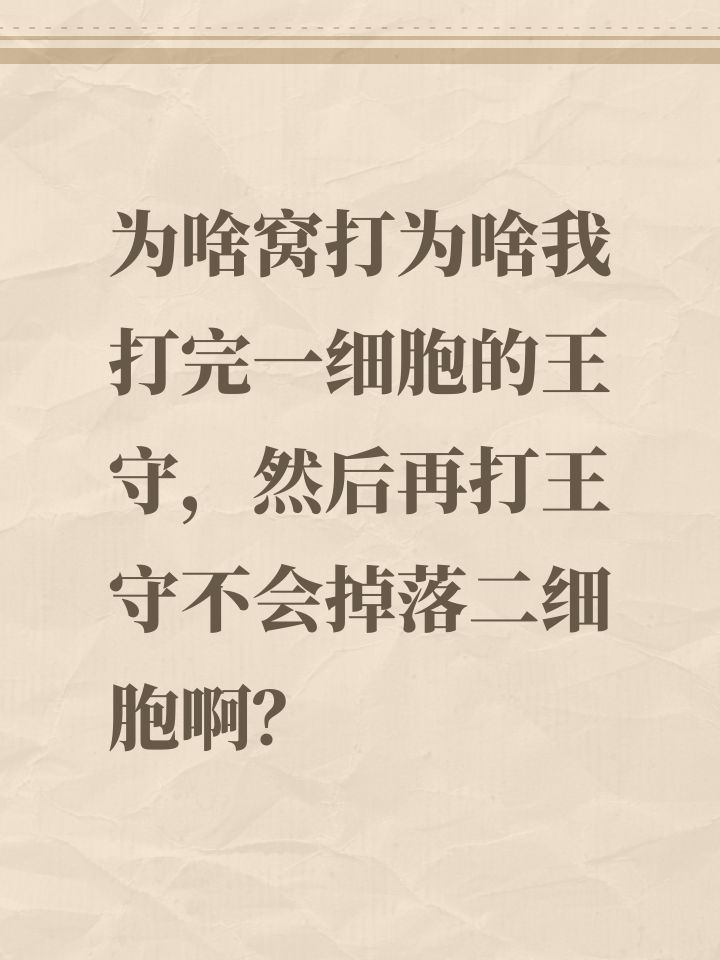 为啥窝打为啥我打完一细胞的王守,然后再打王守不会掉落二细胞啊?