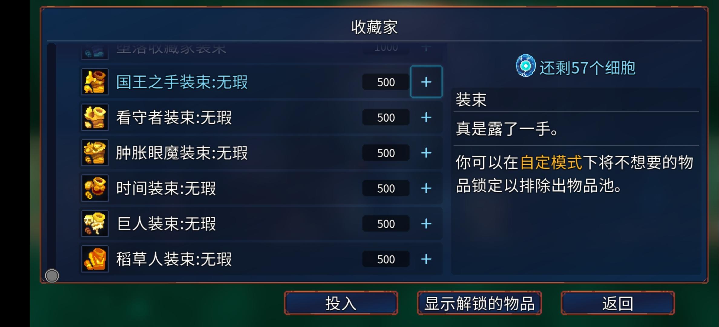 我这无伤了虫母咋没个成就,是因为我开了超级变异了吗?那自定义那些开了不给成就的是不是也不能获得无暇皮了?我前一把开超级变异普通模式一细胞打了王后,也没给衣服,是要从零细胞开始还是不能开超级变异?望大佬解答😘😘每次更新都要重新调键位,而且这次更新后手感极差,路都走不好,经常下砸下蹲😇