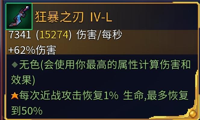 有没有大佬知道狂暴之刃的稀有属性怎么得每次近战攻击恢复1%最多到50%,这个属性能洗出来吗?