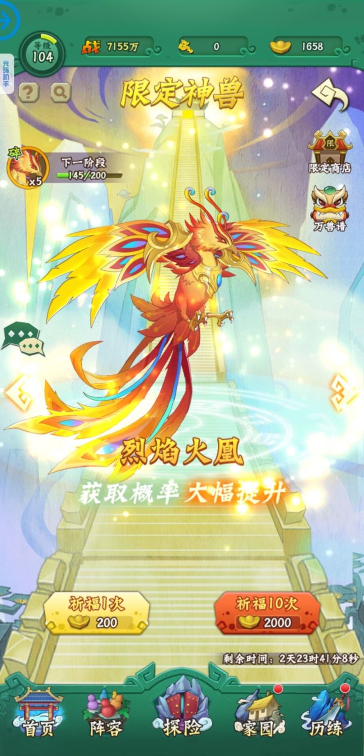 大家还记得我们刚入坑的时候教程里面带我们抽的第一个娃娃吗(゚▽゚),小编当时抽到的橙色大娃也是帮助小编通过了好多前期关卡,现在小编也把他留在身边。到了后面我们又遇到了很多各式各样的抽奖比如神兽抽奖(๑¯ω¯๑),小金刚限定(๑¯ω¯๑),红装抽奖(๑¯ω¯๑)等等。我们的很多稀有资源也都来自于抽奖,今天小编就带大家看看抽奖给讲的各种信息以及一些小技巧叭。1.限定神兽神兽抽奖可以说是大家最爱最恨