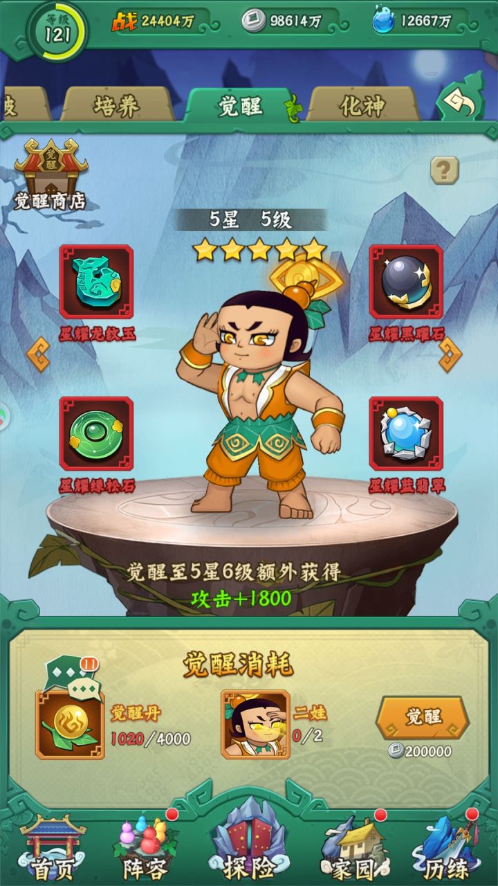 注:本攻略适合不氪或微氪玩家,土豪请随意!注:攻略可能存在错误,也希望大佬指点!1、仅个人推荐:大娃、五娃、金刚、蝴蝶必养:①大娃介绍:控制+辅助大娃=眩晕(突6)+减攻(突8)+生命BUFF(突10)。大娃的定位是控辅,不管是控制还是辅助都是非常强的,10%的生命buff可以大大提高队伍生存力,30%的减攻概率+满星法宝45%的眩晕概率,是后期副本推图的奇兵,值得培养。②二娃介绍