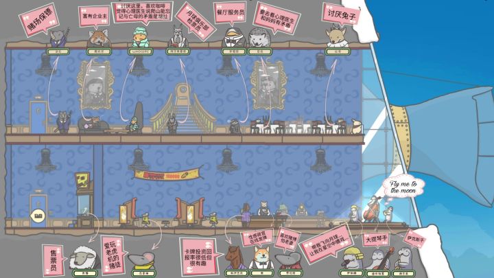 更新的时候正好在大城市准备飞回家一觉醒来就到了森林模式了到了森林这边的俱乐部 有新的小剧情 这似乎是一个望远镜还在看昆虫标本在森林里我的兔兔在观察树叶也可以钓鱼 我的兔子在岸边打水漂