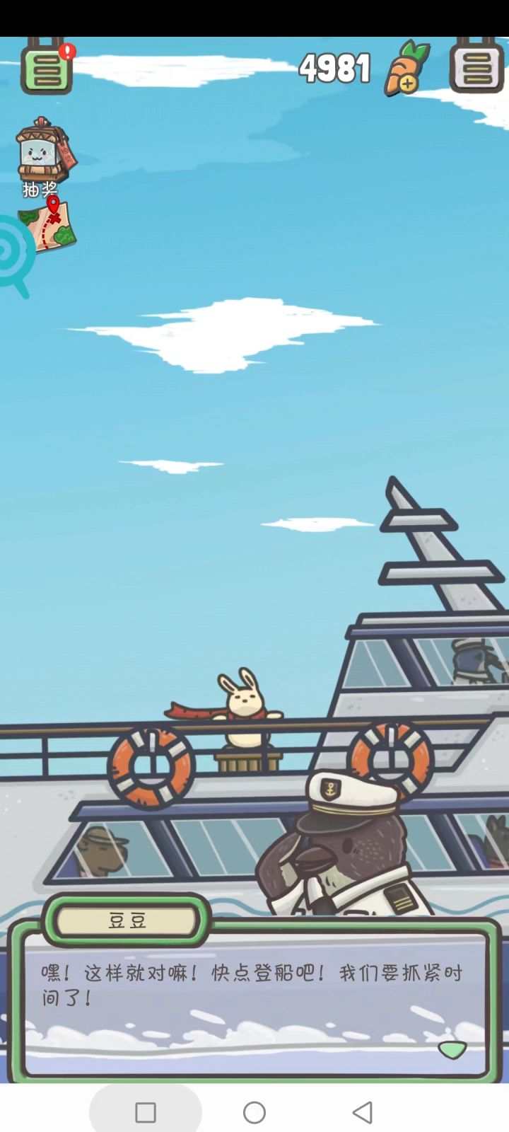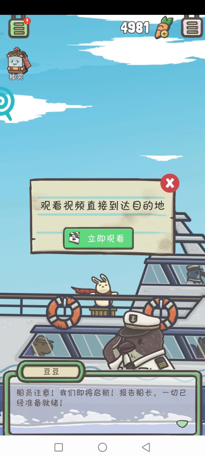 各各位啊,为什么我点了去晴空岛的地方,但是啊,唉,等一下他们没有扣除我的胡萝卜啊,之前问了船长,船长说今天内会到这个晴空岛。然后我去找的副总跟他说我决定去晴空岛了,然后我看了广告,我起码看了6个广告,但是他一直都在这个航行过程中啊,这个是怎么回事啊,最主要的是,嗯,第1张图我就已经涨了4981个胡萝卜,但是啊,到了后面航行过程中,我还是4981个胡萝卜。有人知道这个是怎么回事吗#游戏讨论嗯,顺便我