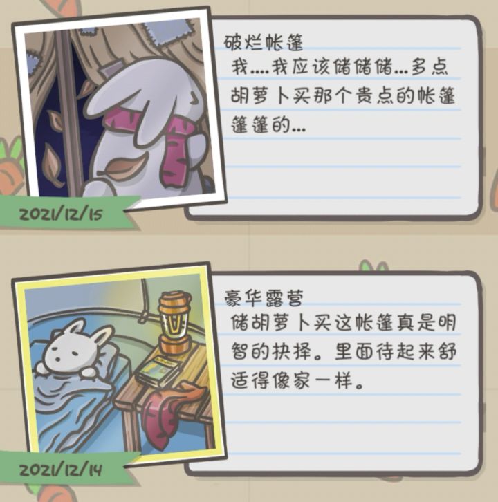 雪山上的两个帐篷。(好想知道左边那个是谁的)月兔之爱情故事。(旁边的兔兔好像一个莫得感情的干饭人)知法犯法,还不然外传。