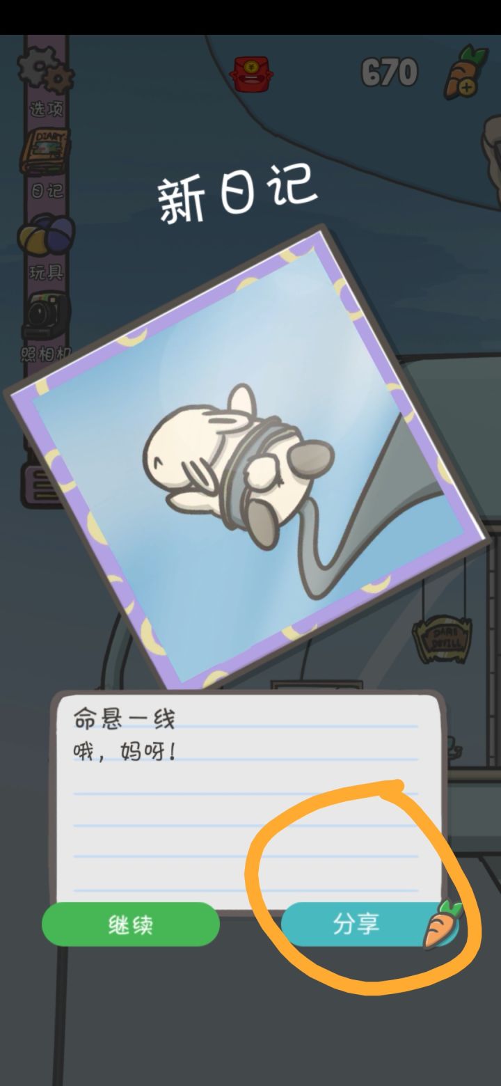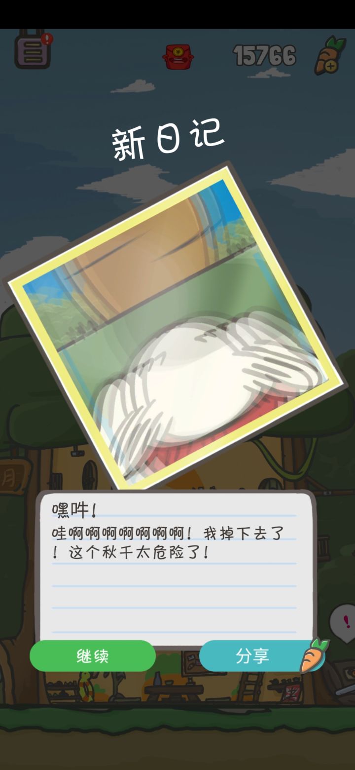 那就是分享日记每分享一次就能有10个胡萝卜而且一篇日记可以无限次分享,每一次都有胡萝卜直接分享给微信上自己的账号就可以了每次10个虽然不多,但应急是绝对够用的了😁