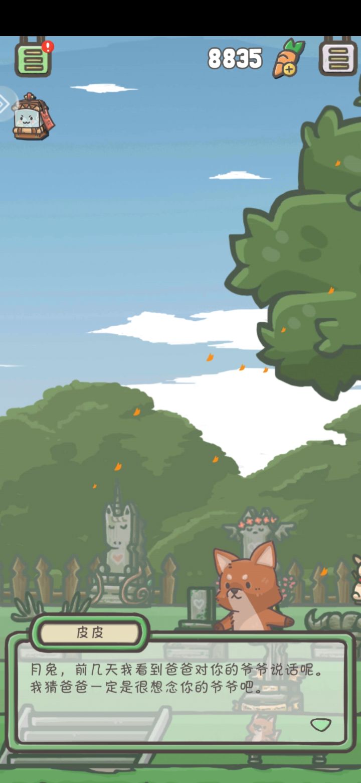 番外:中秋节到了,这天,月兔早早地起了床,准备和朋友们一起吃午饭。吃饭的地点定在了月球俱乐部会员餐厅。月兔拿着会员卡,和朋友们一同享用了美味的一餐。吃完饭,月兔回到了家里,心里有点怅然若失的感觉。从前的中秋,他都是和爷爷一起过的。爷爷会给他做花灯,教他做月饼,陪她看月亮……黄昏,他带着爷爷生前埋的桂花酒,来到了墓园。没想到,茉莉也在那里。“月兔!来看你爷爷啊。”茉莉说,“我也来看你香栀爷