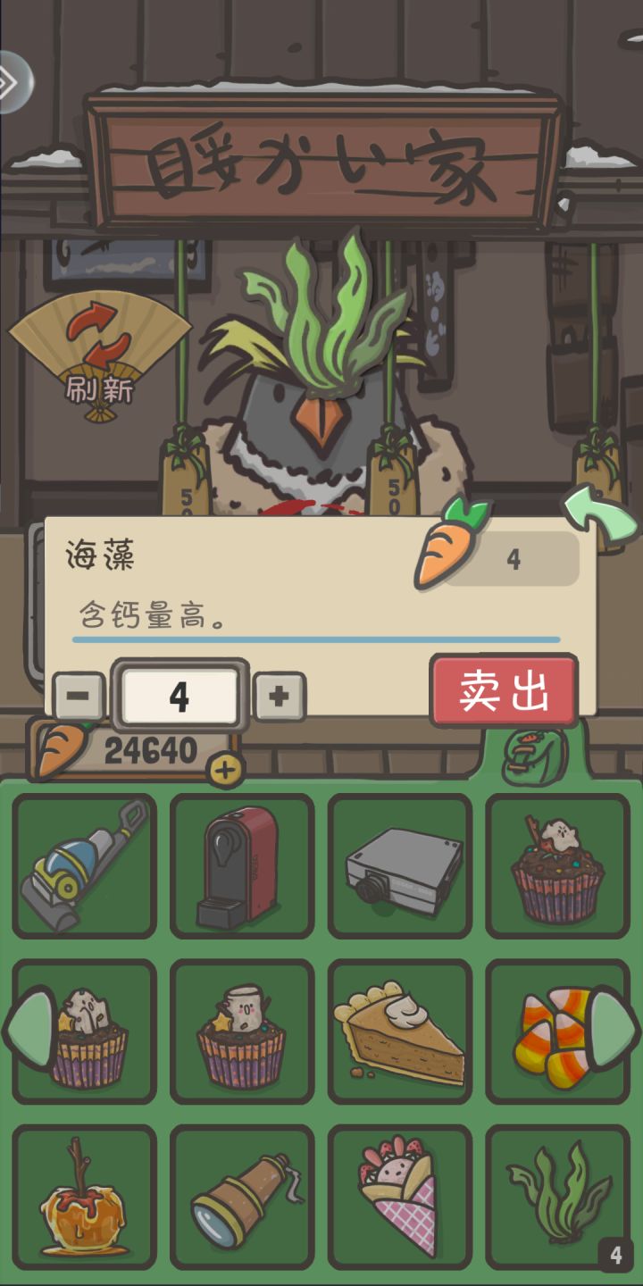 出售海藻的时候,贴图直接长在企鹅老板的头上了hhh很有精气神呢