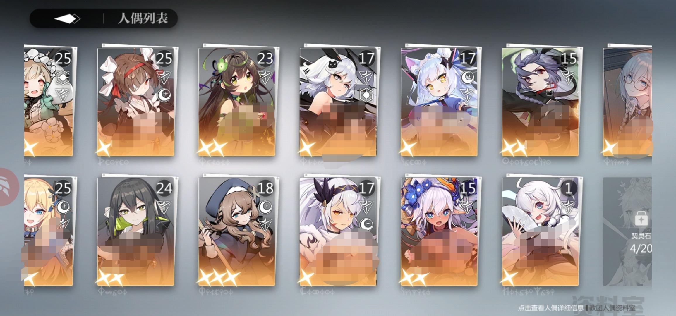 大佬,帮我看看,我第四章都过不去啊。这个游戏的养成好复杂呀,人偶等级、星命、缘轨、回忆,还有两套技能,甚至人偶心情还会影响战力,怎样快速提升心情呀?蕴灵还有等级和星级,金色蕴灵需要升星吗?编队还分前排后排,我蒙了啊求大佬指点一下