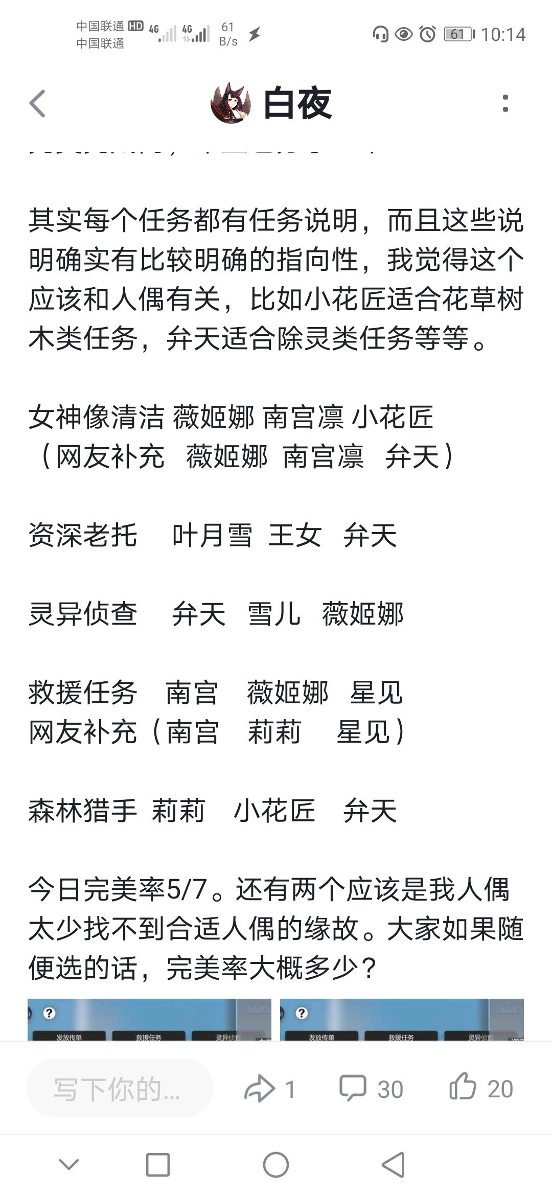 果然委托和人偶有关系吗,今天同一个委托连着两次完美了,记录一下阵容()拔除恶灵:南宫,王女,薇姬娜顺便放一下之前大佬的帖子截图