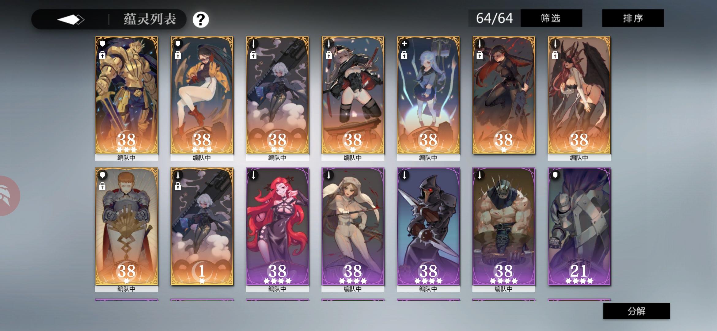 求大佬们指点一开始是xp练队,所以几个喜欢的角色练度还看的过去,也花了很多资源去提好感度,不过我全员好感度15以上,几个稍微高一些因为一开始不懂,没有攒月片换王女,拿去换抽了😂现在离王女还差了100多月片,一时半会搞不出来了我螺旋打到52,这周的boss打到12了,但是主线卡在了8-2的最后那,那几个回血加复活真打不过去了才玩半个月,sr御灵还算多,ssr御灵就只有这些了,女武神还差一个星片就出来了有没有大佬帮忙指点下配队和发展方向🙏