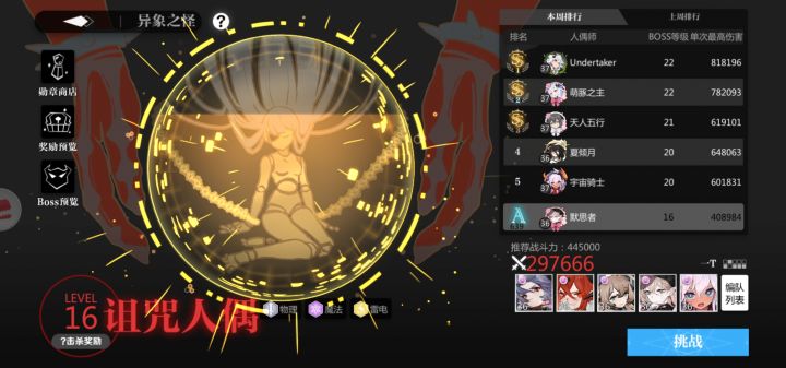 本人没参与过内测,前俩天随便玩的体力都没买,这俩天有空就把关卡通了,非洲豹子头,所以阵容就比较亲民点。主c莉莉,万金油中二天,奶妈王女坦克希亚,辅助开局修女,偶尔换欧若拉雷火弱点的破盾。这阵容物理,雷系,火系,冰系,魔法破盾都有,还都是高效的群体或者多段,需要破盾的剧情上就不需要临时拉工具人了。莉莉大部分就是雷系一套技能就好了,情况不明的反正有二技能单体雷劈,傲慢之类比较肉的单体boss