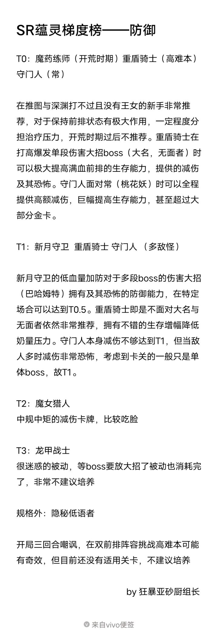 SR蕴灵梯度排行关于龙甲骑士的被动因为触发也没有增益效果显示所以我有点迷惑,如果是一到两回合结束那绝对还是下水道,如果是永久增幅那绝对的真神级(不过不太可能),如果有实验过的可以留下评论,我会修改
