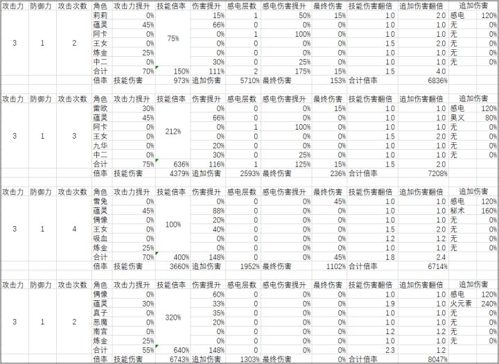 之前有人说我不考虑整个体系的收益。现在我算上整个体系的收益,一些细节如下:都以40级技能做分析,攻击3和防御1的意思攻击是防御的三倍,也可以代换成实际的面板攻击防御,如现在主核莉莉养法能到4k攻击,而怪防御普遍在1000-1500。根据测试,感电伤害吃防御,感电伤害不仅能吃阿卡莉莉的电击伤害增加,还能再吃蕴灵女仆九华的伤害增加/雷属性伤害增加,而且还不是一个乘区!!!不是一个乘区!!!不是一个