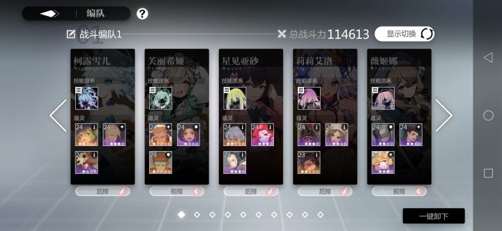 先附上阵容和排名王女up基本人手一个(我不会告诉你们我歪了三个吸血鬼只有一个王女的)欧若拉也很好获得基本大家都有(对,我就是没有阿卡只能用欧若拉了)弁天首冲莉莉星砚白给就不bb了进入正题1.配速 欧若拉>弁天>莉莉>星砚>王女不要速度(弁天莉莉可调换影响不大2.主c莉莉星砚,其余全是工具人,不太要求练度3技能和打法:欧若拉第一套 只用2技能 破盾手 和下面的弁天一样,坦度只需要