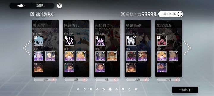第三回合,南宫技能破两层降属。留一层,然后星见降对面防御,修女待机(你要是修女速度快在星见前面可以提属性),王女大招给星见。这时候花花应该要死了要带嘲讽卡。