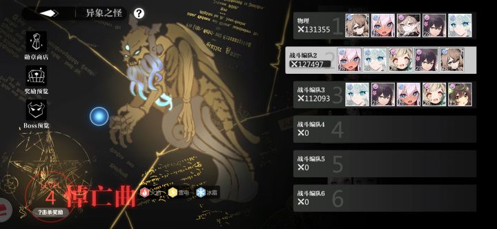 第二回合南宫削属性技能破一层,星见提属性,修女还普攻叠,王女技能叠,花花都行破一层。这时候还有三层盾。