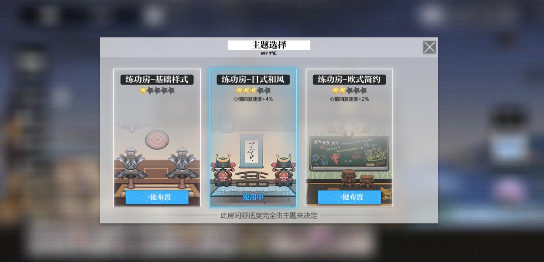 主题还是挺值得买的,日式主题几千月粹可以焕然一新,并且有目前最高的心情恢复加成。欧式主题要差一些,但是好在可以用金币。地中海和水族馆如果还是抽取获得的话,需要准备1w+月粹准备抽干,不然必定抽不全!