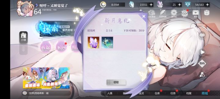 汐宝啊 我昨天下午买了两张月卡 还有女武神的虚像 才去买的摇钱树 但是算上今天我的摇钱树已经领了三次是什么鬼