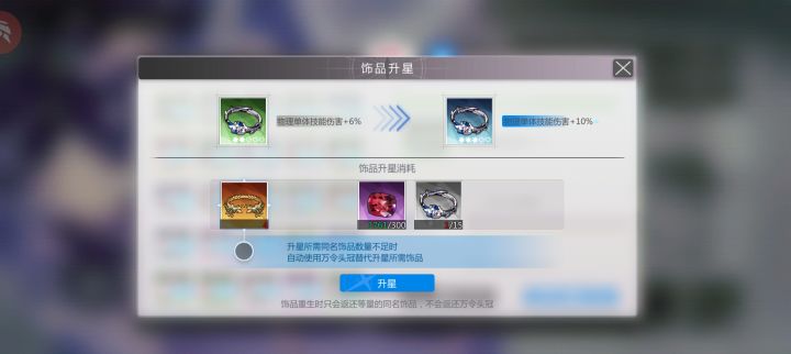 物理单体的饰品有问题,存量写着28,但进去升级存量只有1