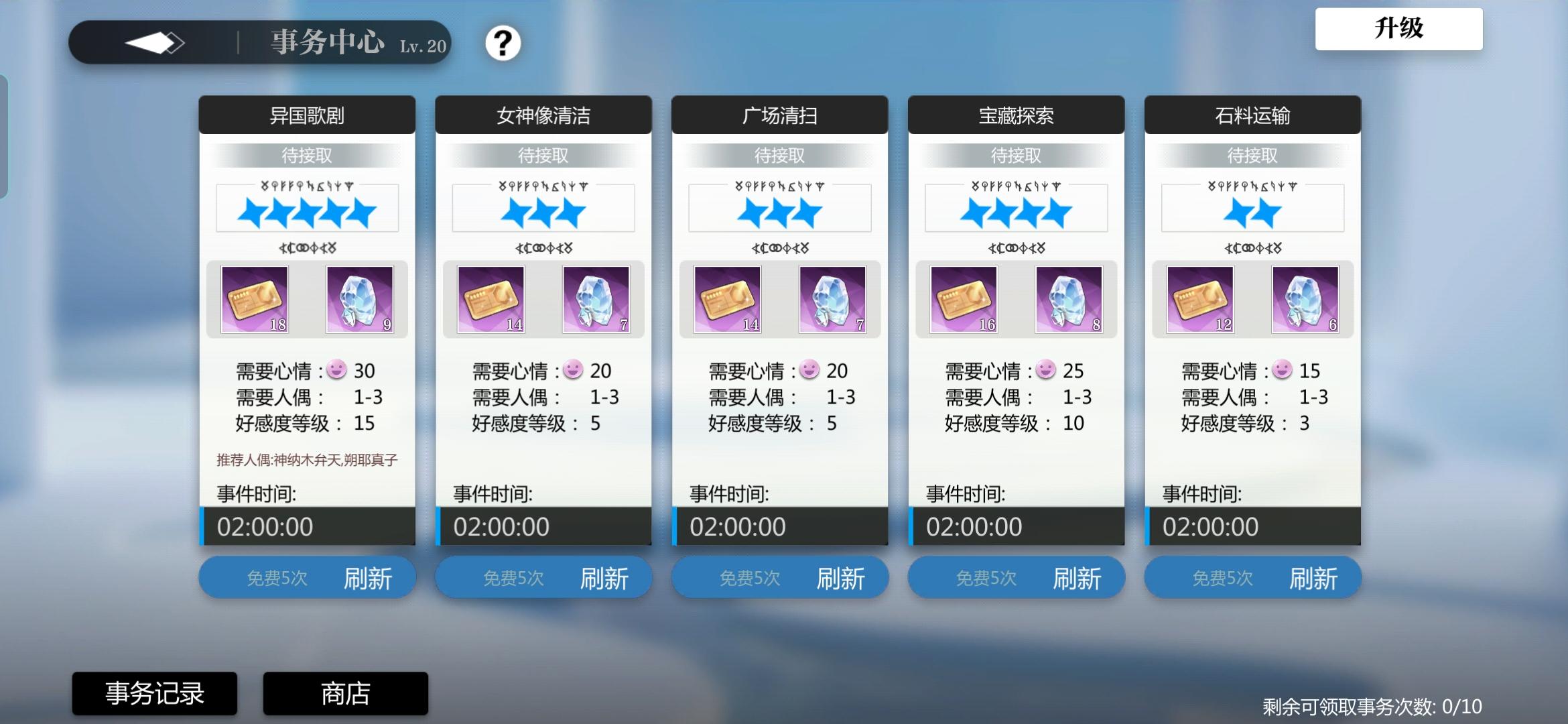 呜呜呜,死了啦!汐宝真的不考虑出个保留委托的功能吗!呜呜呜。只需要添加一个按键,按下去之后可以选择第二天不刷新委托,多好啊,汐宝!
