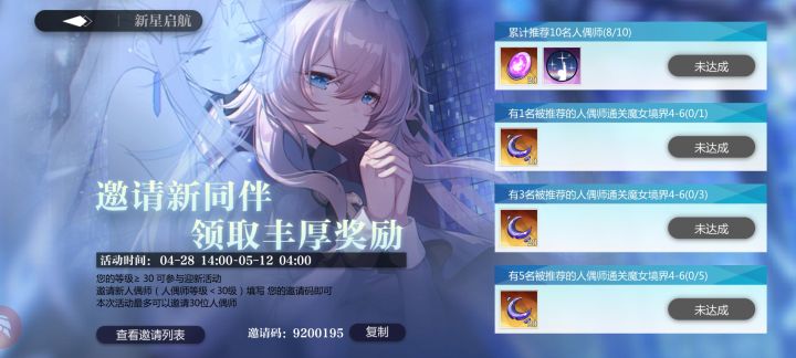 新月 邀请码9200195希望来新人跟我一起玩呀,谢谢啦话说邀请码就是ID呐,可以加好友呐。谢谢给我填的人啦