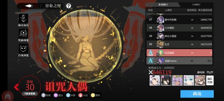 猫猫、学姐都没有。左:单冰打boss(西西)+任意群清怪(莉莉)+群冰破盾。真子奶一下阿卡就行。右:群魔,恶魔输出。王女适当群奶回血刷分,妈带群魔不带治疗,作家花花带防,保血量刷分。没有特别需要的装备。阵容: