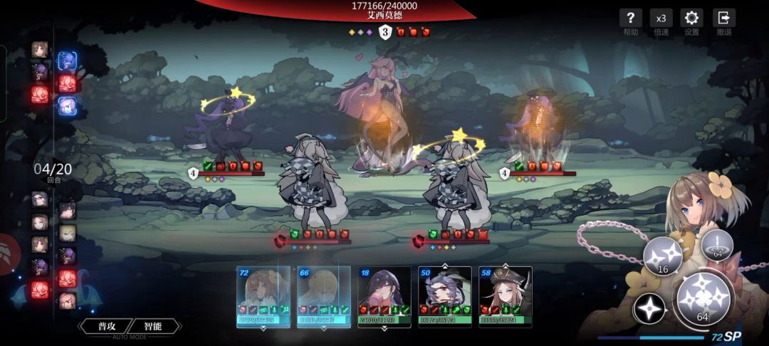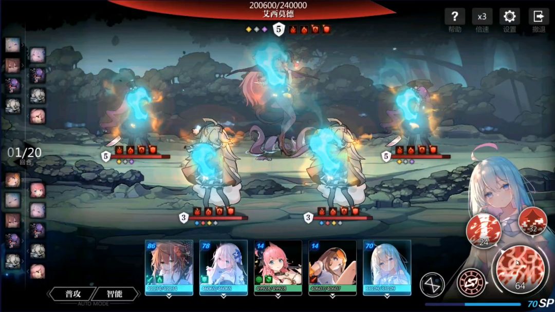 根据b站大佬【无聊的無聊】轴略微改动,莉莉543女武神,光雷,深渊,真子带羽蛾贪一点燃烧伤害,如果19回合扛不住前面可以控下伤害,9回合或11回合阿卡少破一次盾,当然,真子练度高后面也可以贪一下二技能伤害,不过我没试过()