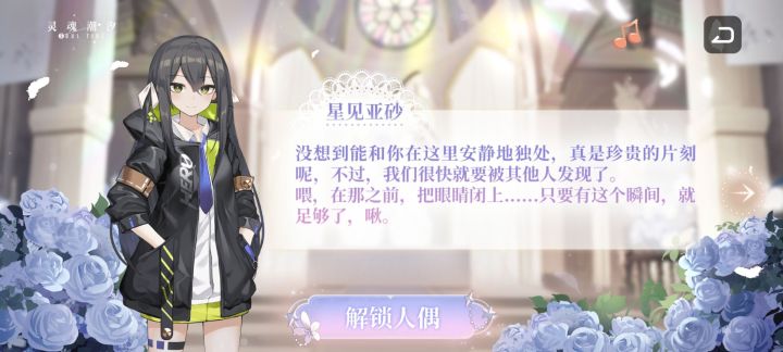[人偶师震惊的环顾着四周] :好漂亮啊(小声) :对吧?~我费了好久才找到的呢[少女一只手指轻轻抵着下嘴唇,脸上缓缓浮现出俏皮的笑容] :感觉怎么样呢~ :好浪漫,就像梦中的场景一样 :……(摩擦声)[见并没有回应,人偶师微微转过头去] :啊…这是……[只见少女的右手缓缓从背后伸出,而手中握着的印有爱心的礼物袋轻轻的举到了人偶师面前,并用左手微微托住] :这是早上巡逻时间的间隙