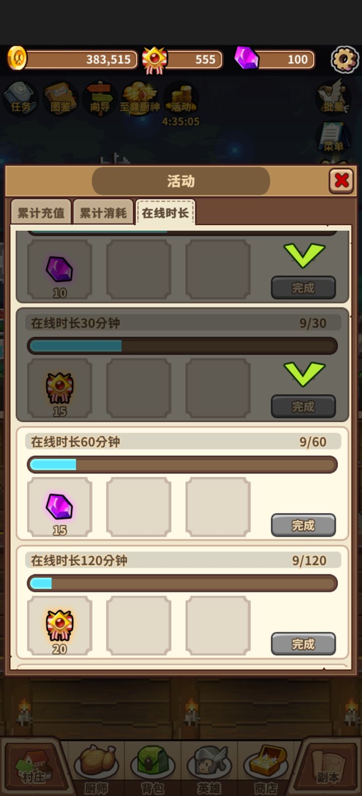 什么东西??我就退出了游戏一下,这个在线时长就又重新计算??有这么玩儿人的吗???和着之前开着手机两小时白挂机了是吗??????就知道收钱不知道维护bug???