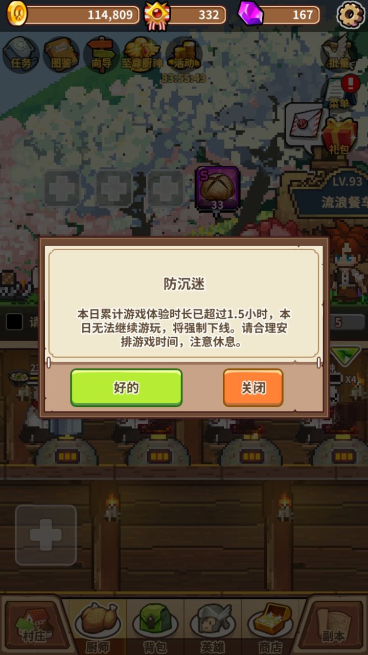 玩不动了 什么时候能有真的离线收益了再回来玩无限背包和自动厨不上线挂着就跟没有一样简直绝了!!?一天不挂机个6小时以上就没法攒食材继续玩大家都忙谁有那么多时间啊 玩放置类游戏本来就是因为轻松来着 结果占用那么多时间我手机不用干别的吗?想玩就不能关你软件了么?关键这连后台都不可以!进个广告忘记退出了 妈蛋 游戏时间就停止了??!什么鬼 不小心半天都白挂着了官方你就没想过给玩家减负吗?那么