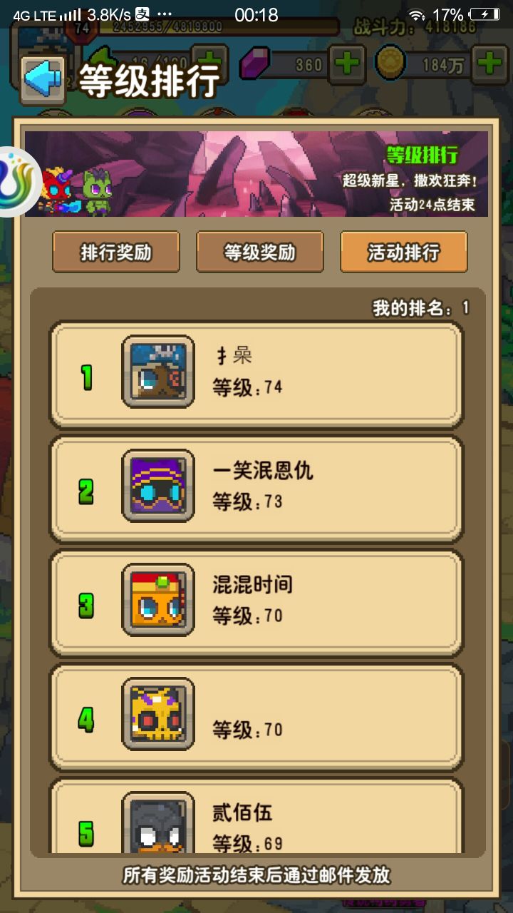 排行榜不准确,一样的等级,或战力,或段位,或关卡,都是后来者居上。等级奖励也没发,说好的24点结束,到现在还没(~_~;)。