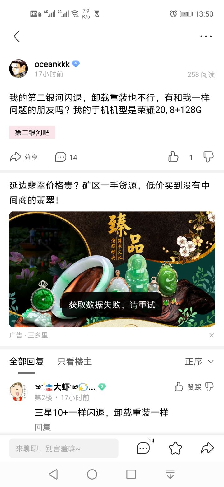 我的第二银河闪退,卸载重装也不行,有和我一样问题的朋友吗?我的手机机型是荣耀20, 8+128G