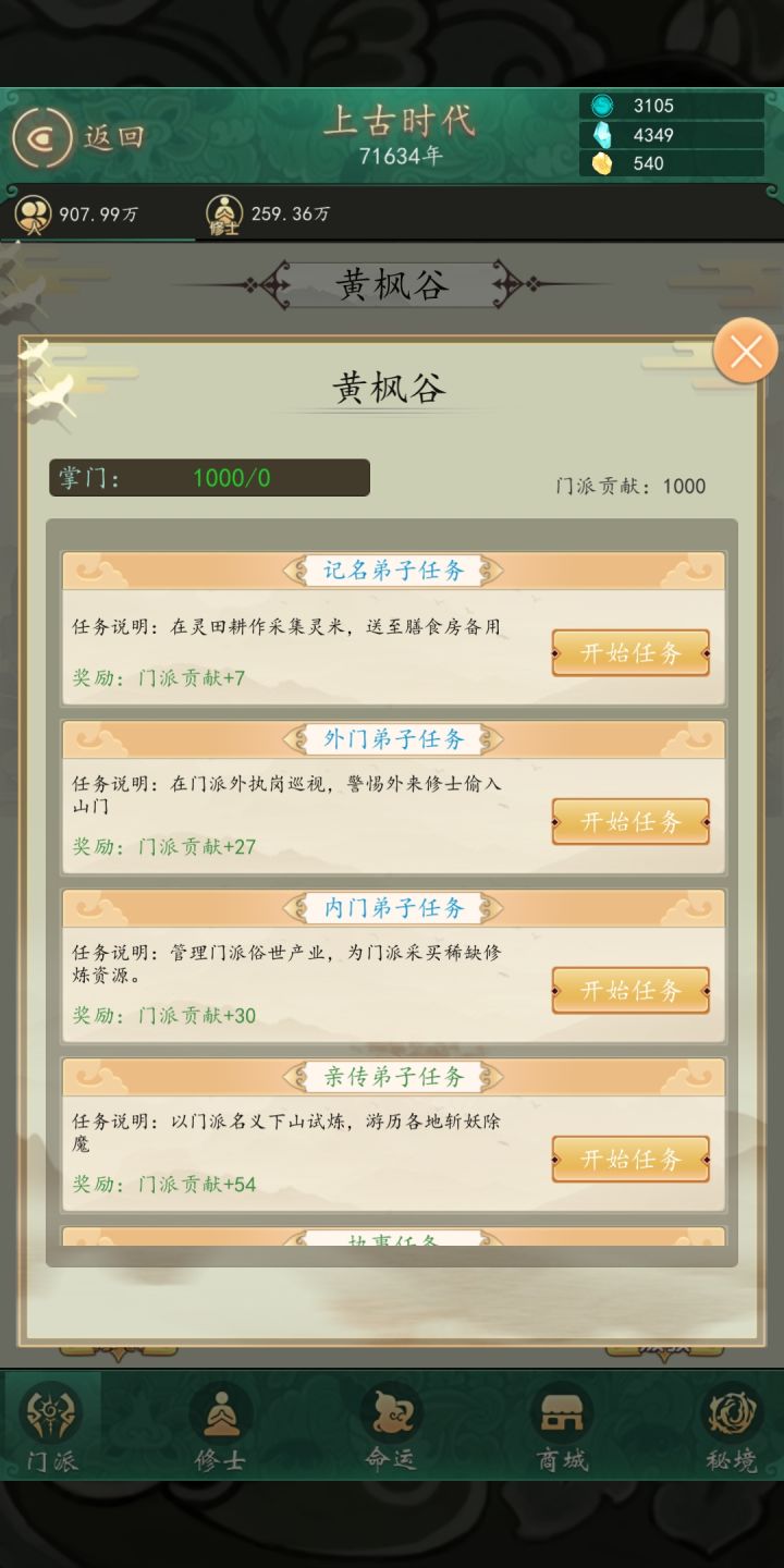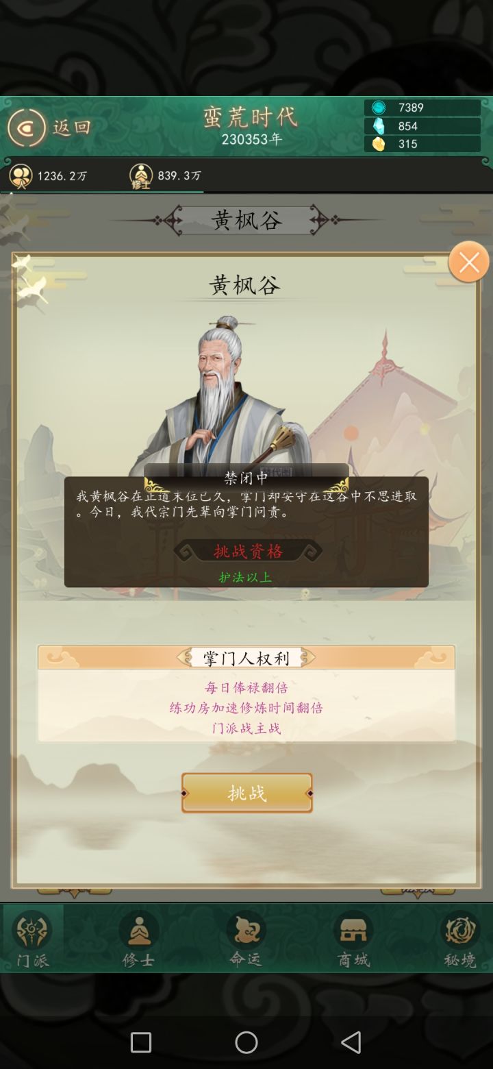 早上起来发现没有变成内门弟子,挑战了下掌门,居然成功了,直接当掌门