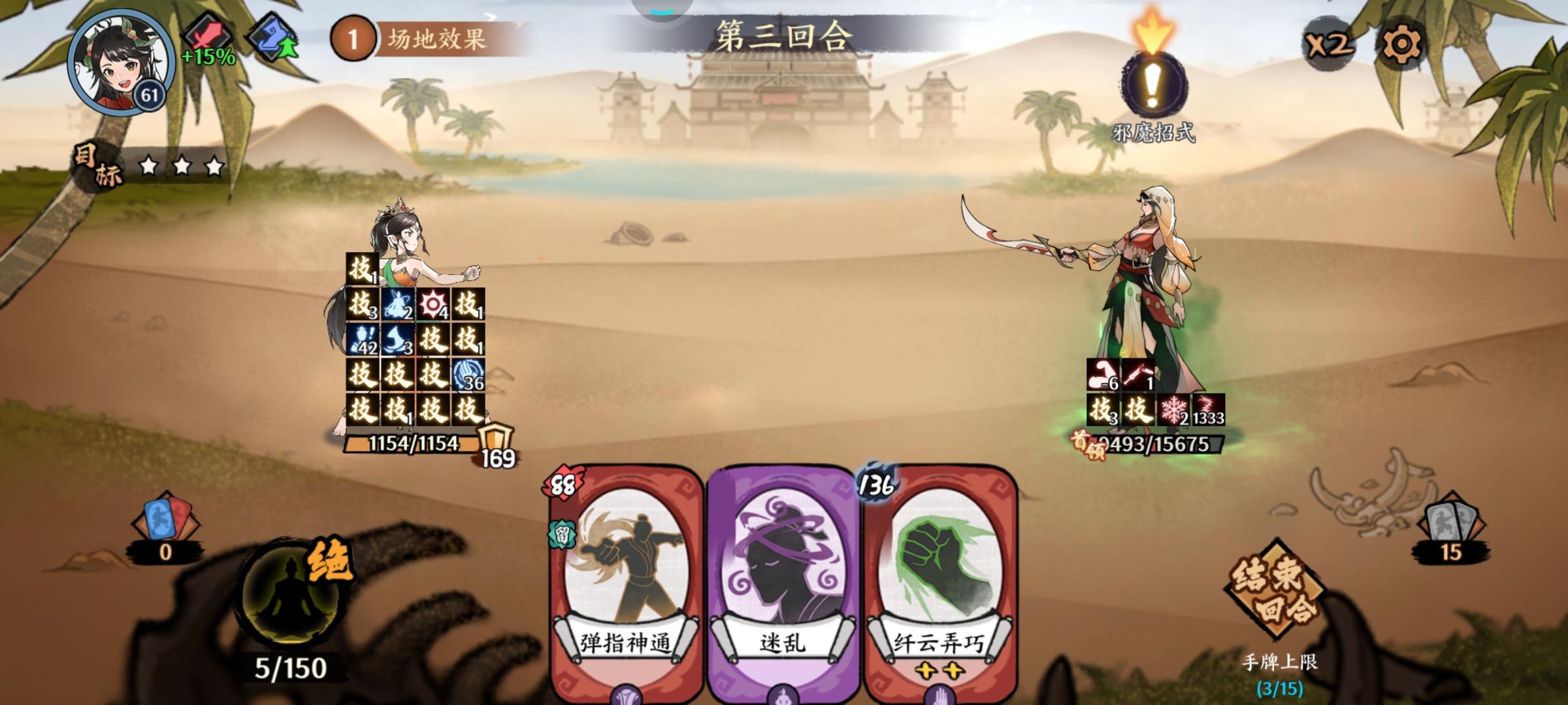众所周知,混搭的聚气金刚就靠一手叠甲。 高星纯金刚的氪佬自然不惧。 而像我这种混搭半吊子就惨了, 被紫魅儿破甲+塞牌给恶心坏了。 所以要打赢,只能在紫魅儿破甲前,二回合内解决战斗。 这就不得不请我们的老朋友,万能的【星辰身法】。 基于【星辰身法】的众星捧月,带来的爆发式过牌,进而在二回合内打出足够多的伤害。 注意点: 多注意自己手牌上限,别抽牌抽溢出了,可以先把[消耗]牌用掉,免得进弃牌库。 得有