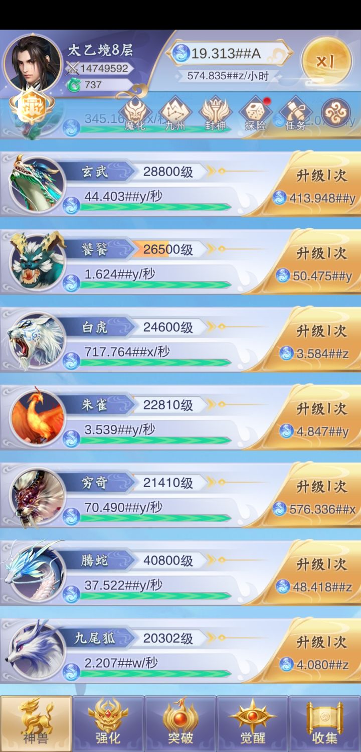 我是金丹期,总结一下我之前的经验,主要就是觉醒,花仙玉在还有一个小时左右时觉醒,可以在觉醒之后探索收益高,优先升级给的最多的神兽,优先强化全体收益,还有封神大会名次要尽量靠前。