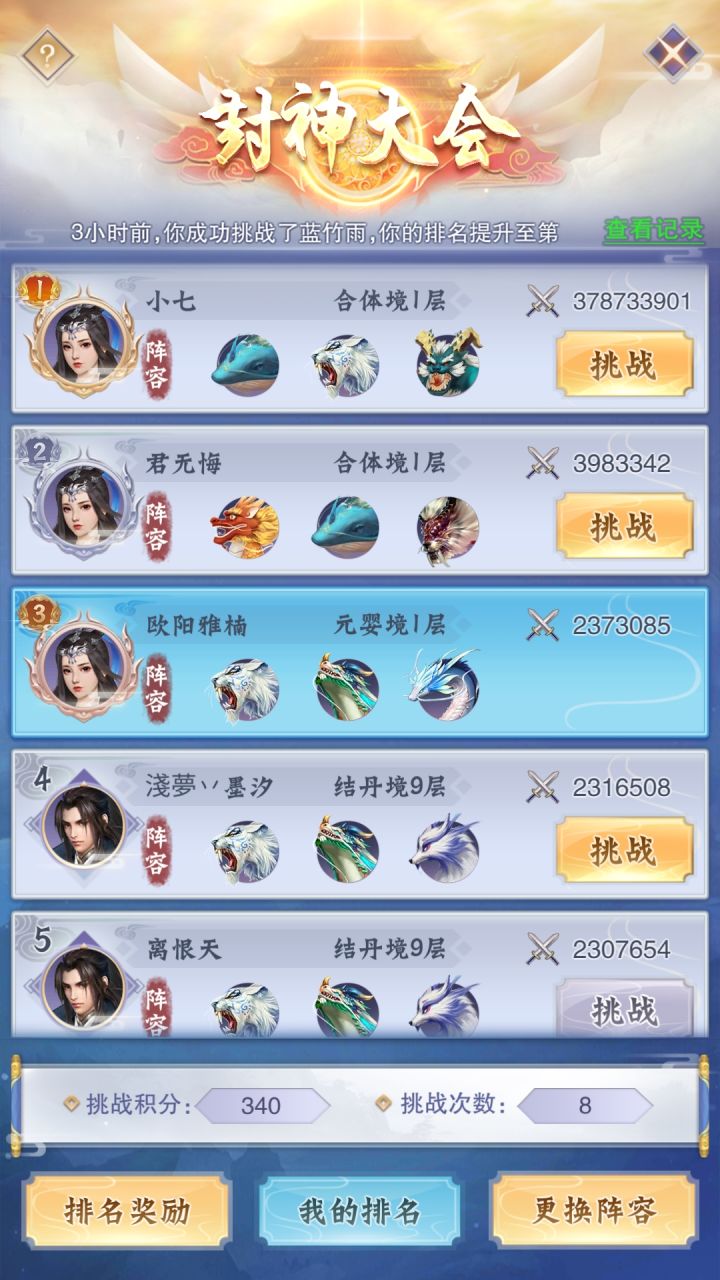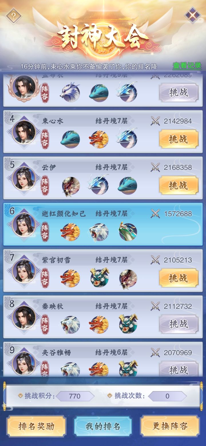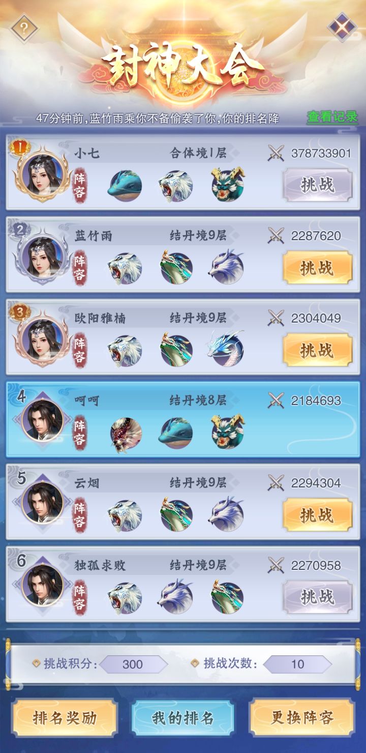 本来我是排行第一一夜之间多了个战力高我两倍多的 我两次点进封神 前后最多十分钟他战力又涨了七十万(我当时的战力才两百万)科技横行我就不陪着了