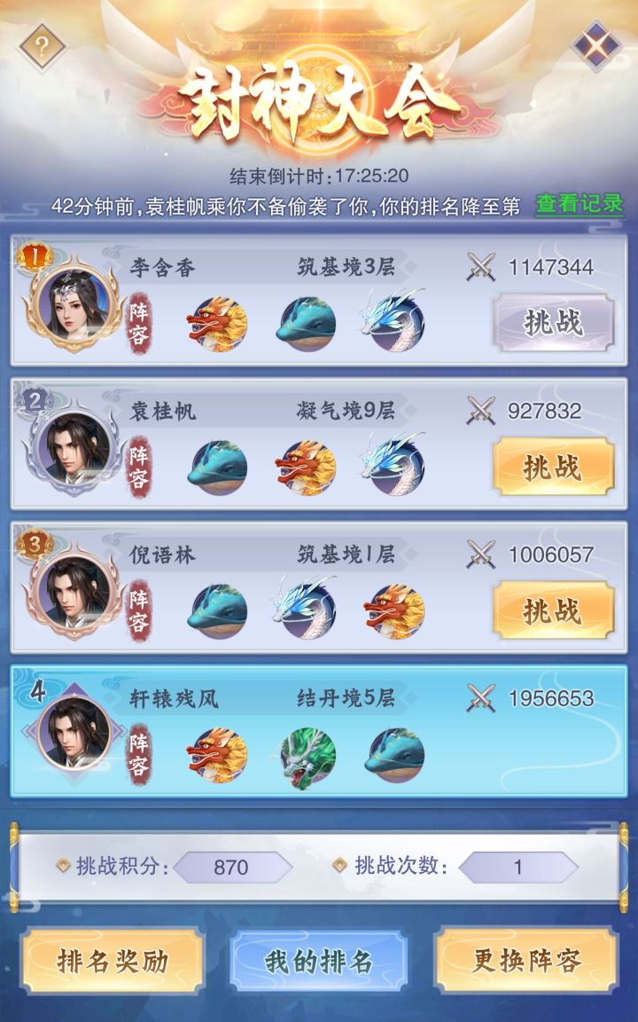 现在只希望官方把封神大会修复一下,不然真的没兴趣升战力了,然后也希望有一个聊天系统,不然感觉真的跟打人机一样。