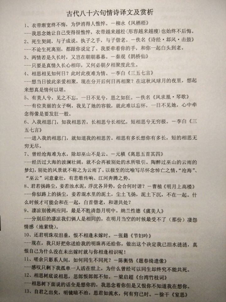 叔,我觉得我们可以加点古代情诗方面的内容,增加文艺气息,如图p.s:这是我们老师发的作文素材~