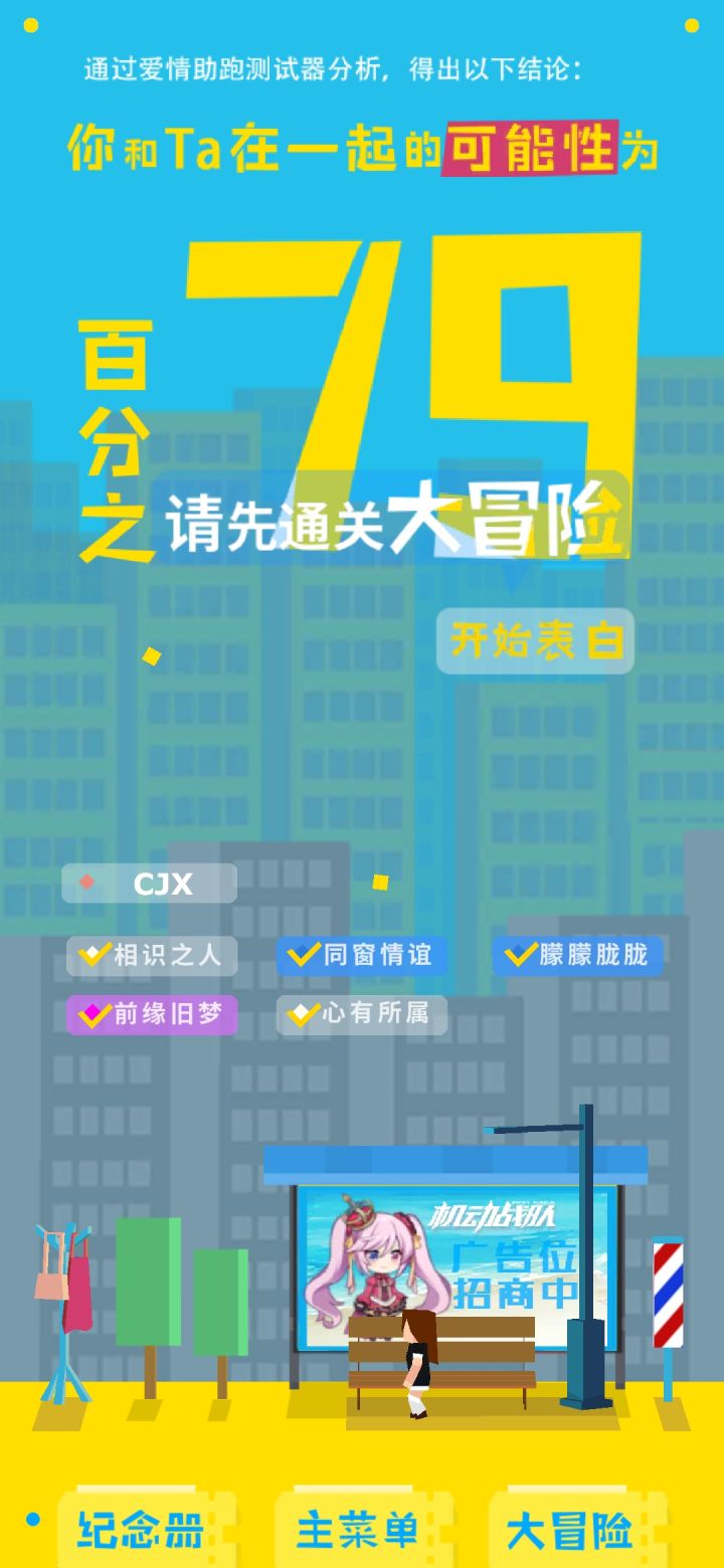 都通关了,为什么开始表白不让我表白?是不是出bug了,这次好像没有附加关卡