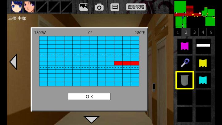 泞之翼1 THE ROSEFINCH CURSE(朱雀的诅咒)黑影结局(支线结局) / 宝藏结局B(支线结局) V1.01版撰写人员:@好礼丶DR(主作者) @流星雨下呀下1.右转2次,取走椅子上的【小眼球】。2.左转2次,查看脸谱,把【小眼球】放上去,得到【拼图】和【铜币】。3.后退,右转2次,点击图示红框区域,准备放上【拼图】。触发剧情,小琪传送到2F•高二(2)班课室。4.右转,